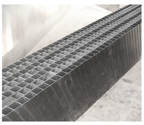 or PP, the media features a structured array of inclined square tubes that